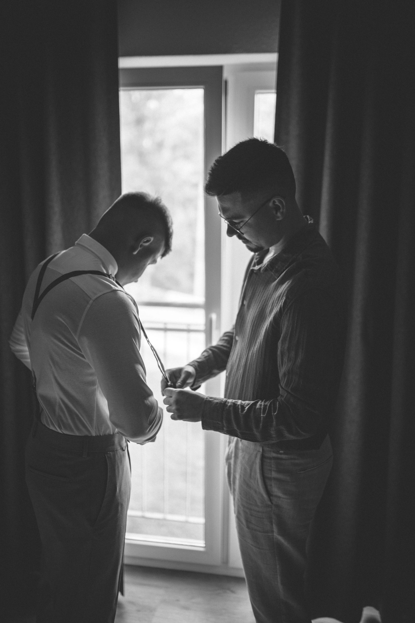 Der Tag beginnt im Verborgenen: Bei ihr: das Styling, das Anstoßen mit den liebsten Freundinnen, das Kribbeln in der Luft. Bei ihm: das Binden der Krawatte, der letzte Schluck Kaffee, ein stiller Blick in den Spiegel. All das voller Vorfreude und Aufregung – leise, ehrlich, berührend. Ich halte diese ersten, ganz persönlichen Augenblicke für euch fest.