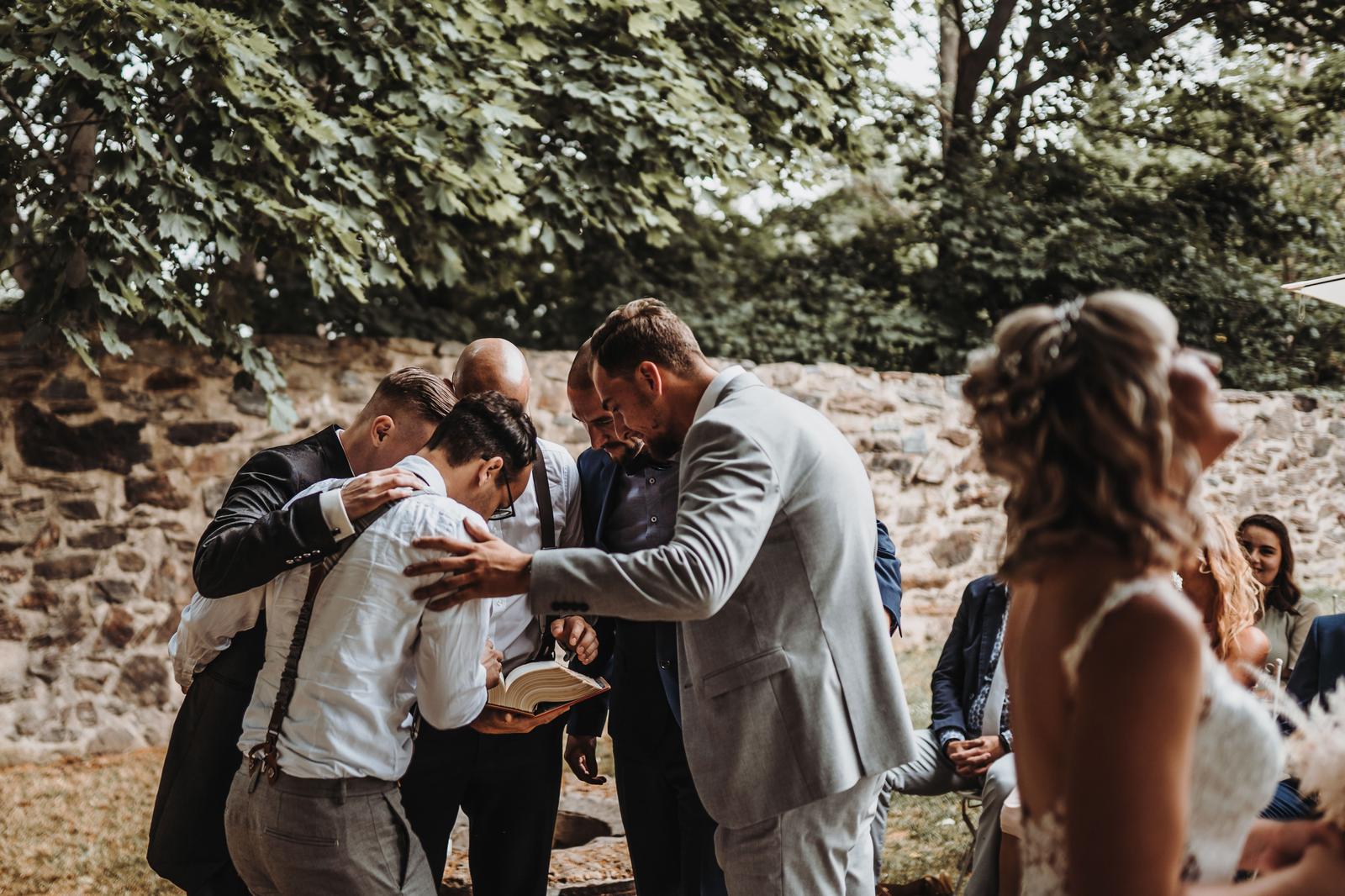 Nach der Trauung kehrt oft für einen Moment Ruhe ein. Ich entführe euch für ein paar stille Minuten. Raus aus dem Trubel, rein in den Moment. Für euch. Für echte Bilder. Für Zärtlichkeit, Blicke und leises Lächeln. Diese kleine Auszeit schenkt nicht nur innige Aufnahmen, sondern auch euch beiden eine Pause voller Gefühl.